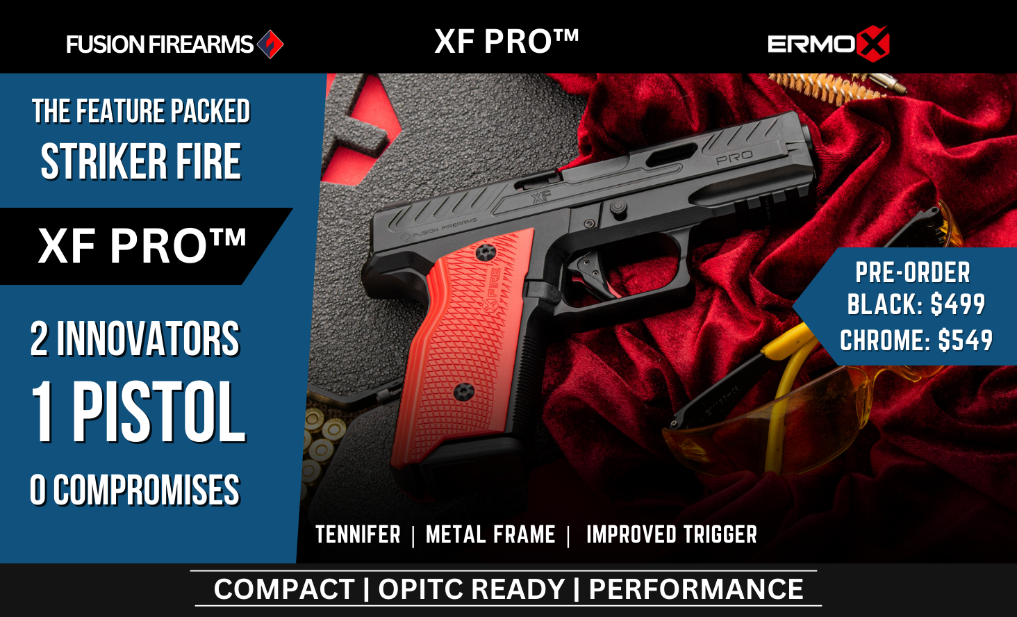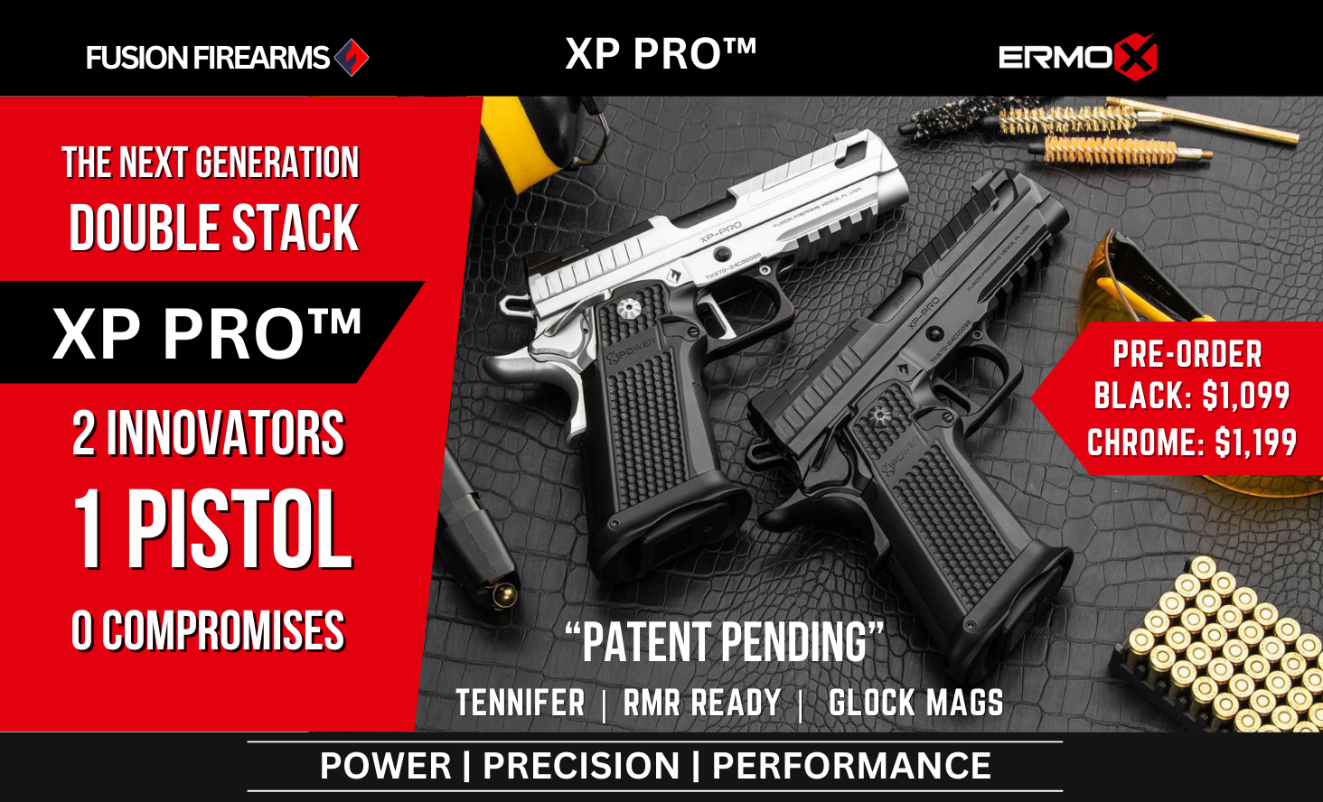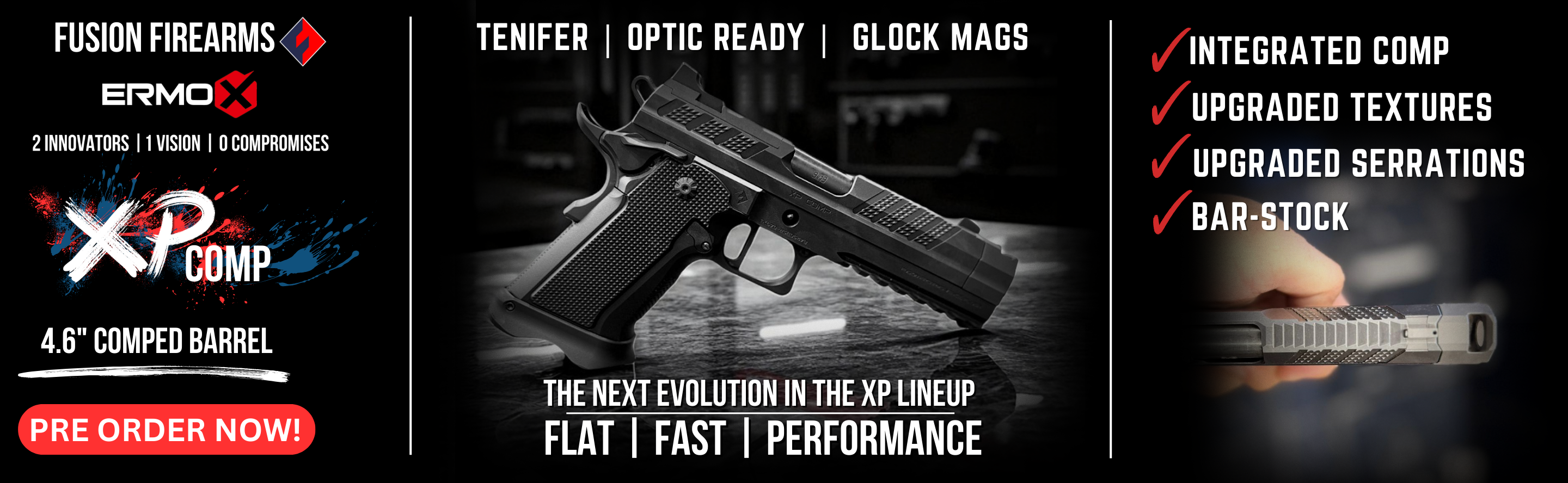 After months of development, testing, and real-world feedback, the Fusion Firearms XP Comp is here — a factory-compensated wide-body 1911 platform built on the XP Pro foundation. We engineered this model to deliver flatter shooting, faster follow-up shots, and a competition-ready control feel — all informed by input from our customers, test teams, and partners at Ermox.