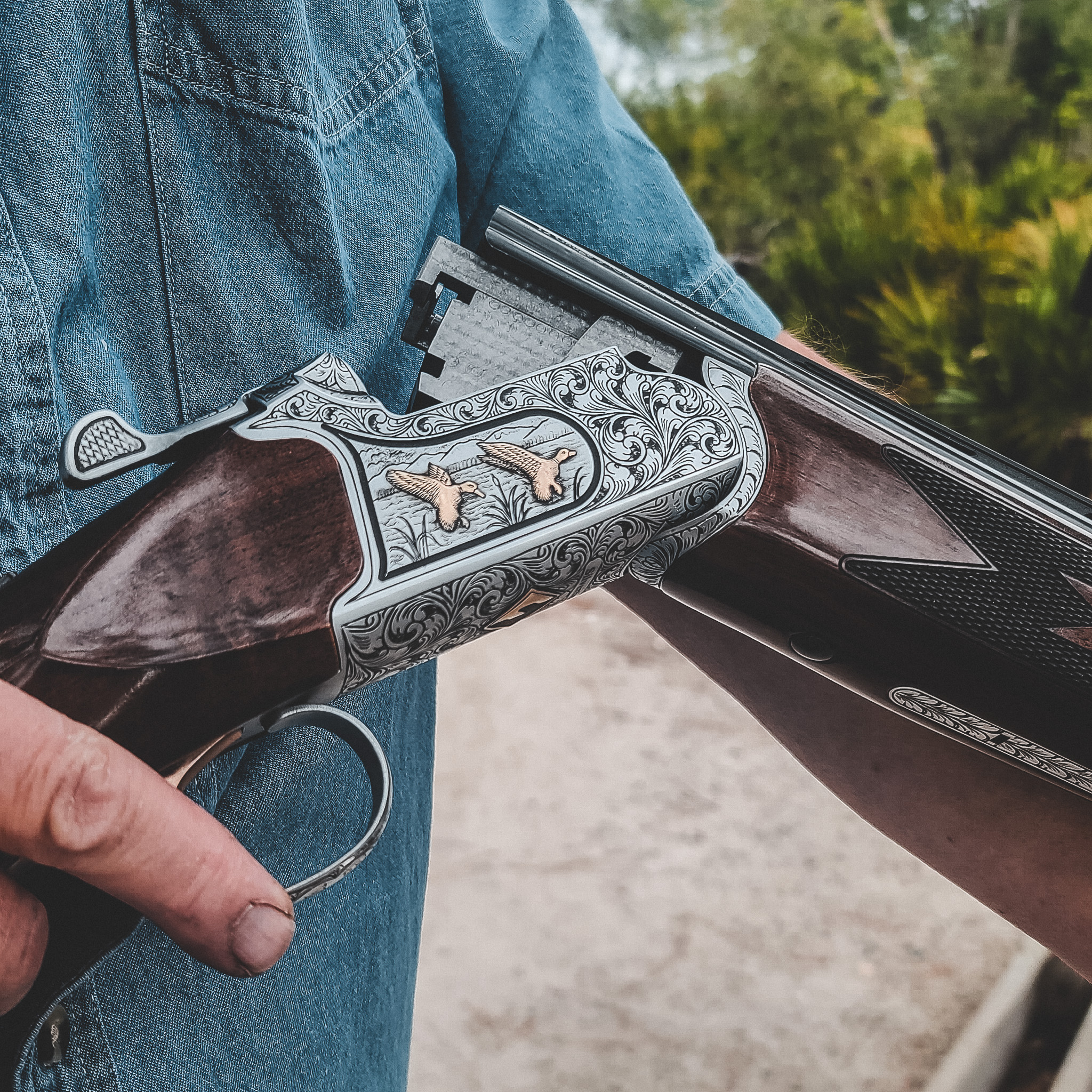 The shotgun's stock is made from high-quality walnut and is designed for excellent control and quick target acquisition. The Silvertip also features a vented sight rib, brass bead front sight, vented rib between barrels, extended choke tubes, suede fitted case, and rubber butt pad, all of which come as standard. In addition, the choke tubes are the same common size as those used by Benelli & Beretta. The Silvertip Also has many upgradeable features with many different features including upgrading to the trap version which features an adjustable stock. We also offer more engraving patterns.